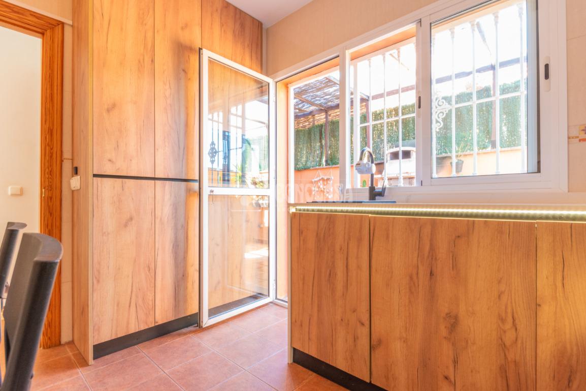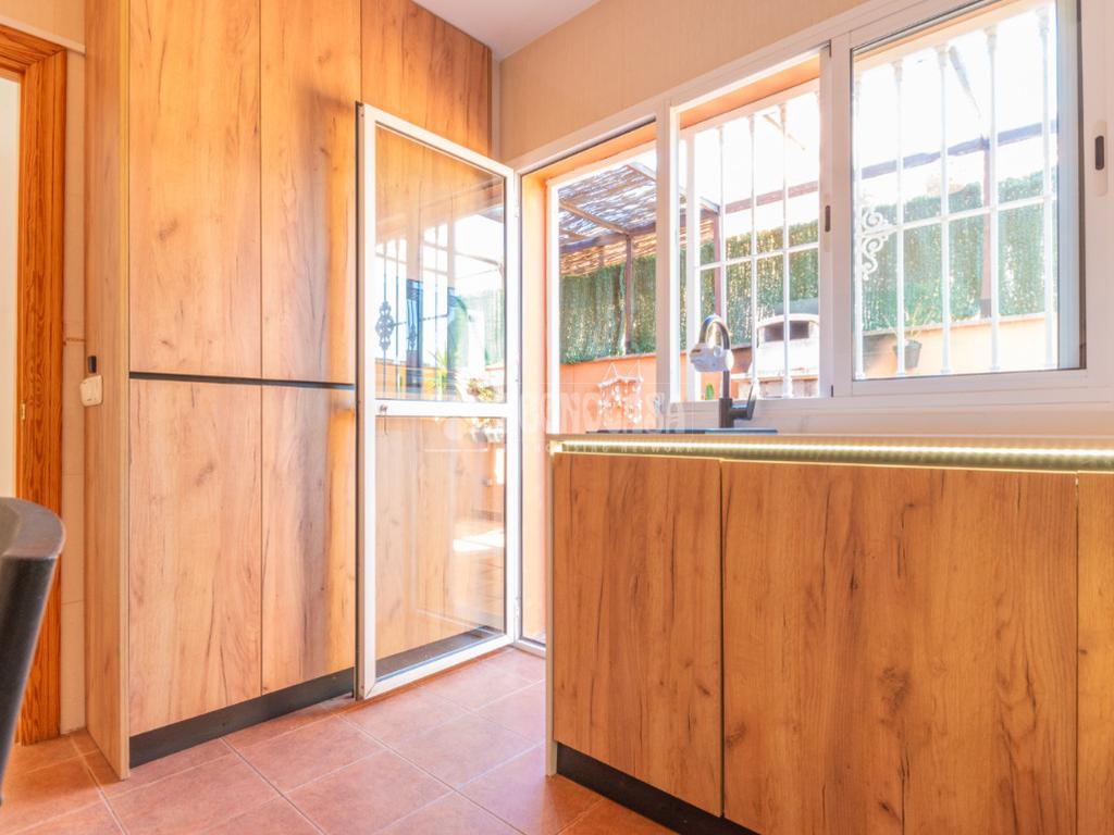 En la planta principal, la vivienda cuenta con un luminoso salón y una cocina independiente, ambos con salida directa al patio trasero, un espacio ideal para disfrutar del aire libre con barbacoa o de reuniones familiares. Además, dispone de un aseo de cortesía en esta misma planta.