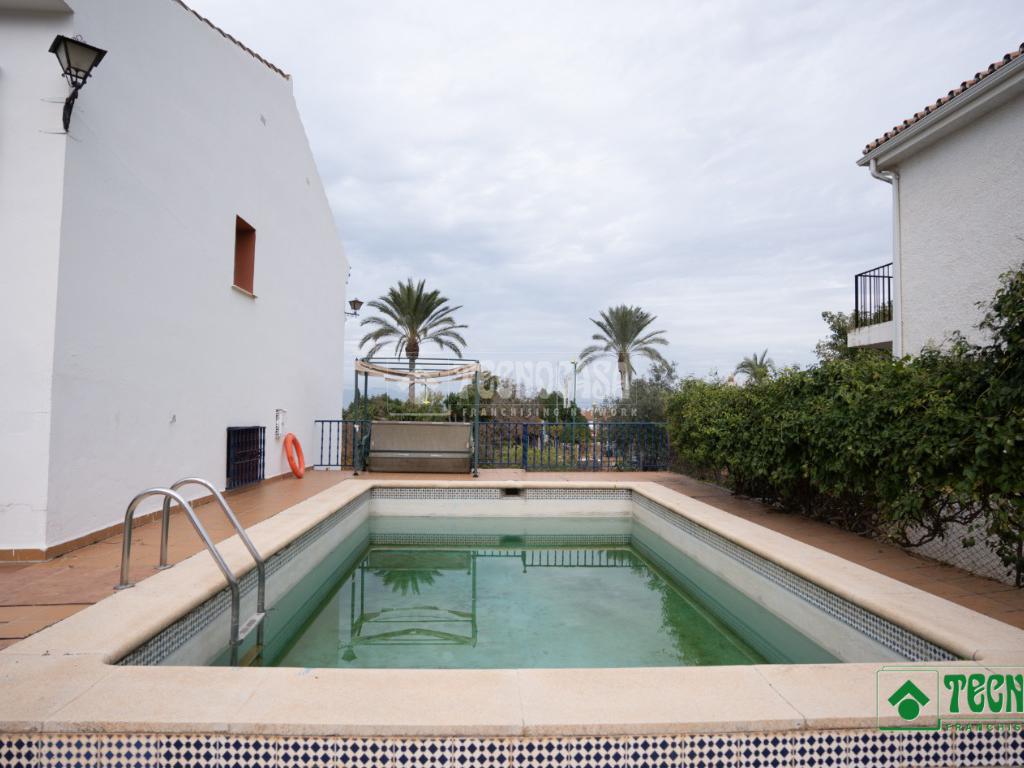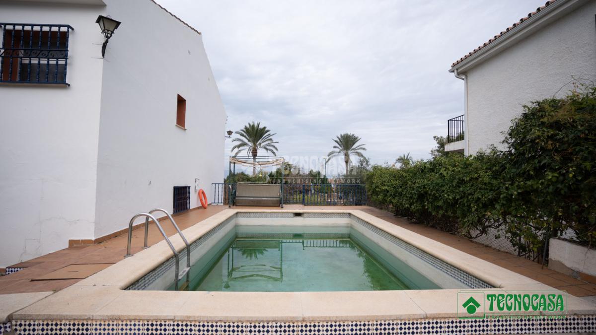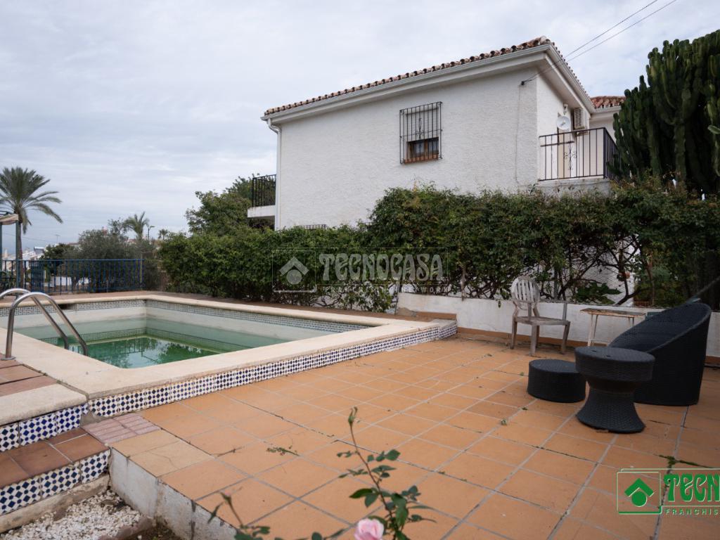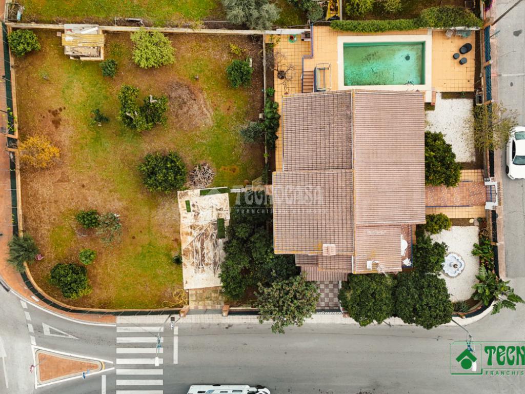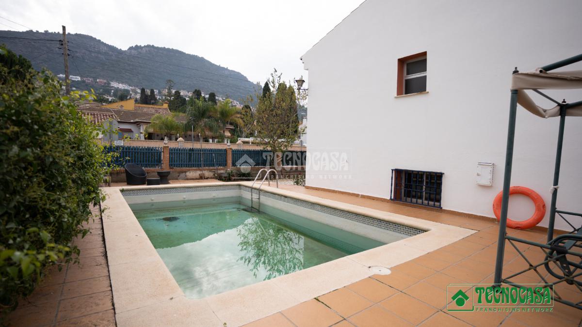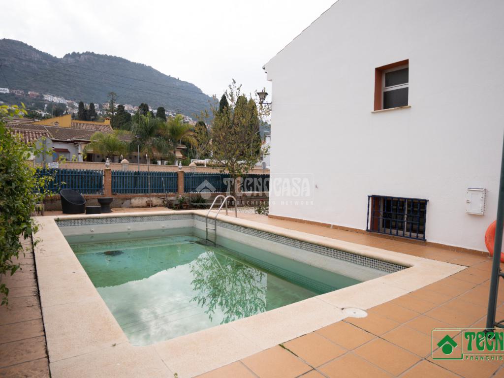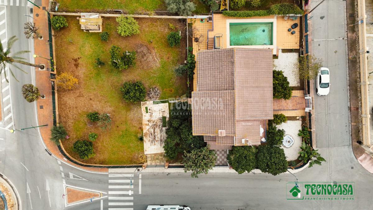 La vivienda se asienta sobre una amplia parcela de 1.195 m², con zonas ajardinadas, patio, piscina privada y terreno con árboles, perfecta para disfrutar del aire libre durante todo el año.