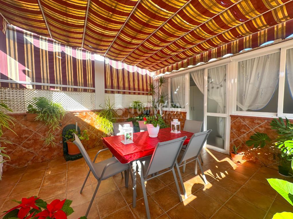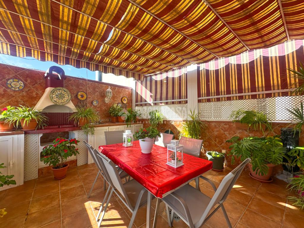 Patio o terraza privada con toldo, barbacoa y lavabo, ideal para celebraciones o simplemente para disfrutar del buen clima que caracteriza a nuestra localidad.