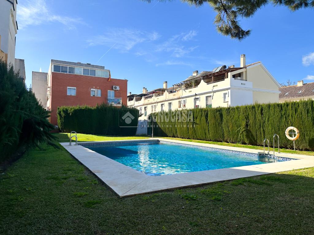 Piscina comunitaria con cuartos de baño, perfecta para refrescarte y disfrutar en los meses de verano.