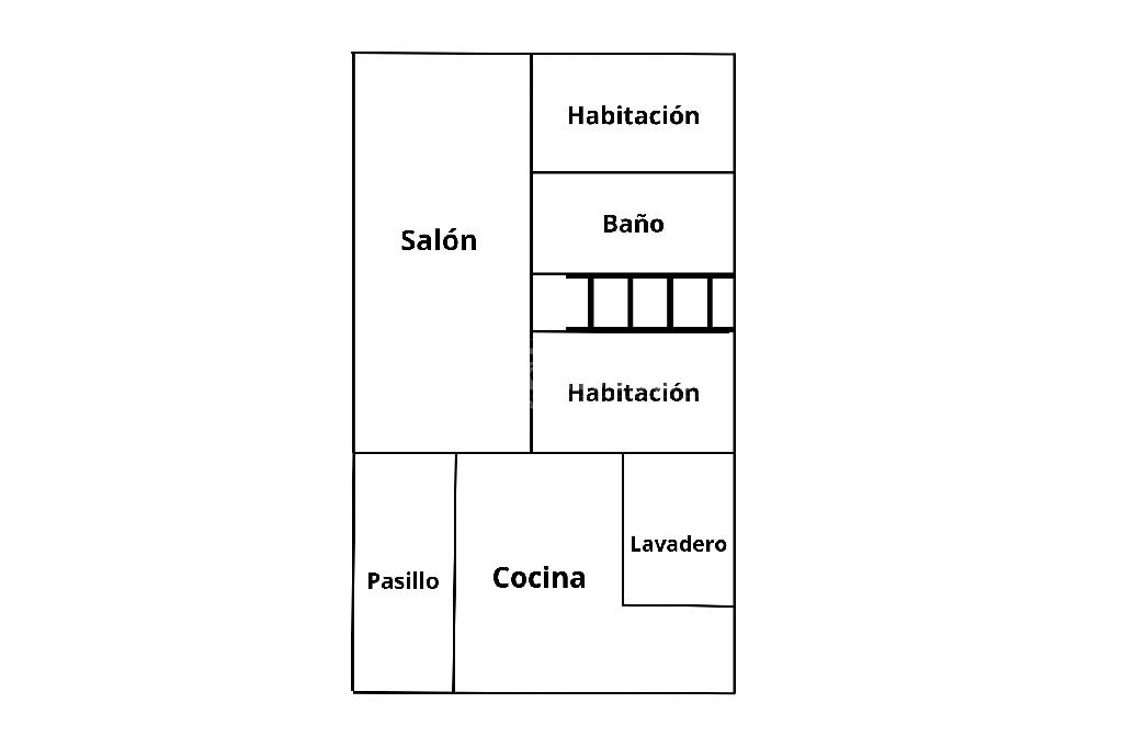 Planta baja: amplio salón, cocina independiente, un baño completo y dos dormitorios.